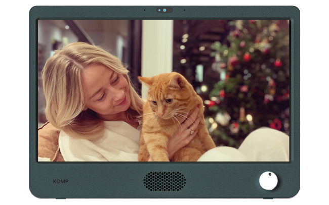 Komp er koblet til en app på telefonen til brukerens venner og familie. Gjennom appen kan familien dele bilder, sende meldinger og starte videosamtaler. For den som har Komp skjer alt automatisk – de trenger ikke gjøre noe.